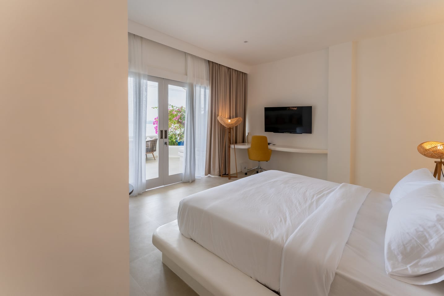 Nestled within the breathtaking Santorini Beach and Resort, Room Apollo offers an unparalleled luxury retreat with an elegant, all-white aesthetic that exudes both sophistication and opulence. This stunning room features a private balcony with an ocean view & sunrise, allowing guests to soak in the serene beauty of the surroundings.