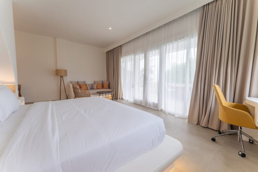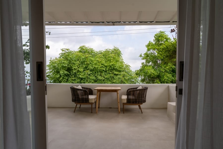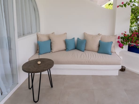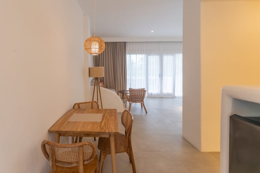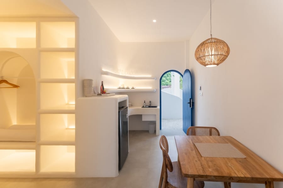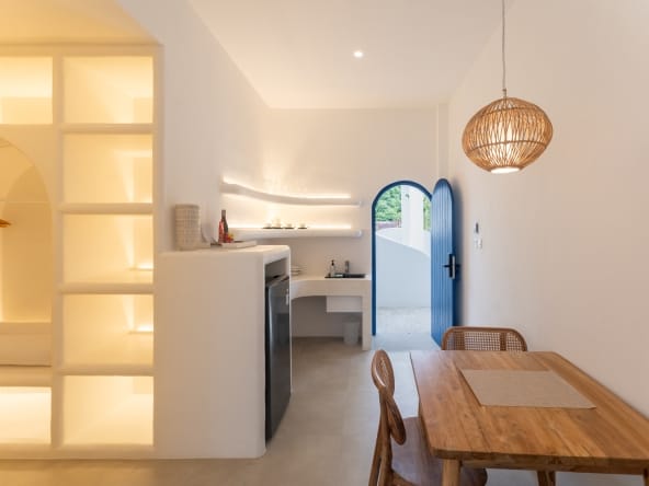 Step onto your private balcony and be mesmerized by the ocean view & sunrise, where the beauty of the Aegean Sea unfolds before you. The spacious lounge area on the balcony provides the perfect setting to relax, making every sunrise and sunset an unforgettable experience.
