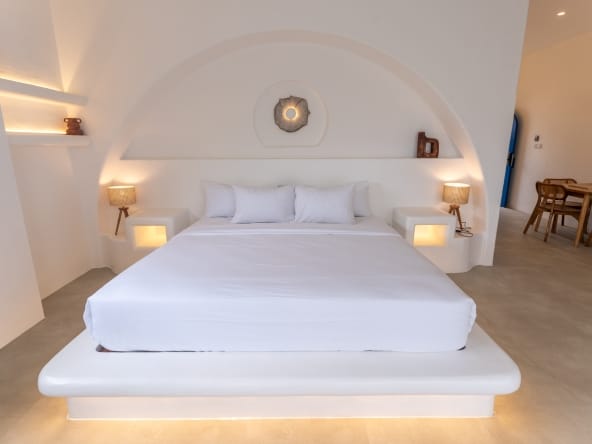 Experience the ultimate blend of elegance and grandeur at Room Zeus, a prestigious retreat within Santorini Beach and Resort. With its pristine white aesthetic, this villa radiates a sense of luxury and sophistication, offering an unparalleled stay in Santorini’s breathtaking surroundings.